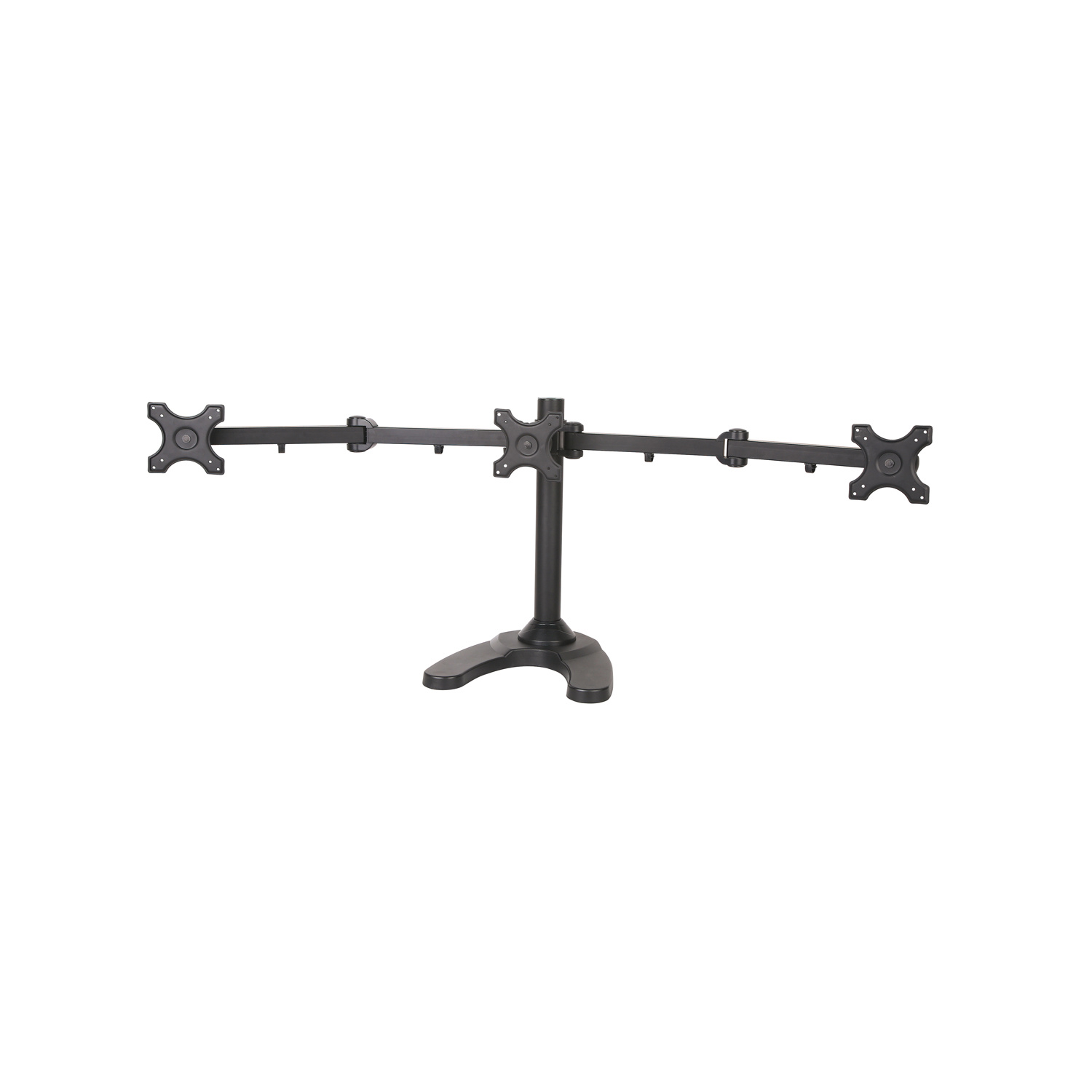 Optimice su espacio con el soporte de mesa Kimex 015-1253 para 3 monitores de 13 a 24" 🖥️. Instalación versátil en la mesa o a través de ella, con ajuste en altura, inclinación, giro y rotación para un entorno de trabajo personalizado y ergonómico 🌟. Su sistema de gestión de cables asegura un acabado ordenado y elegante 🎨. Perfecto para un escritorio moderno, combinando funcionalidad y estilo para mejorar su productividad 👌.