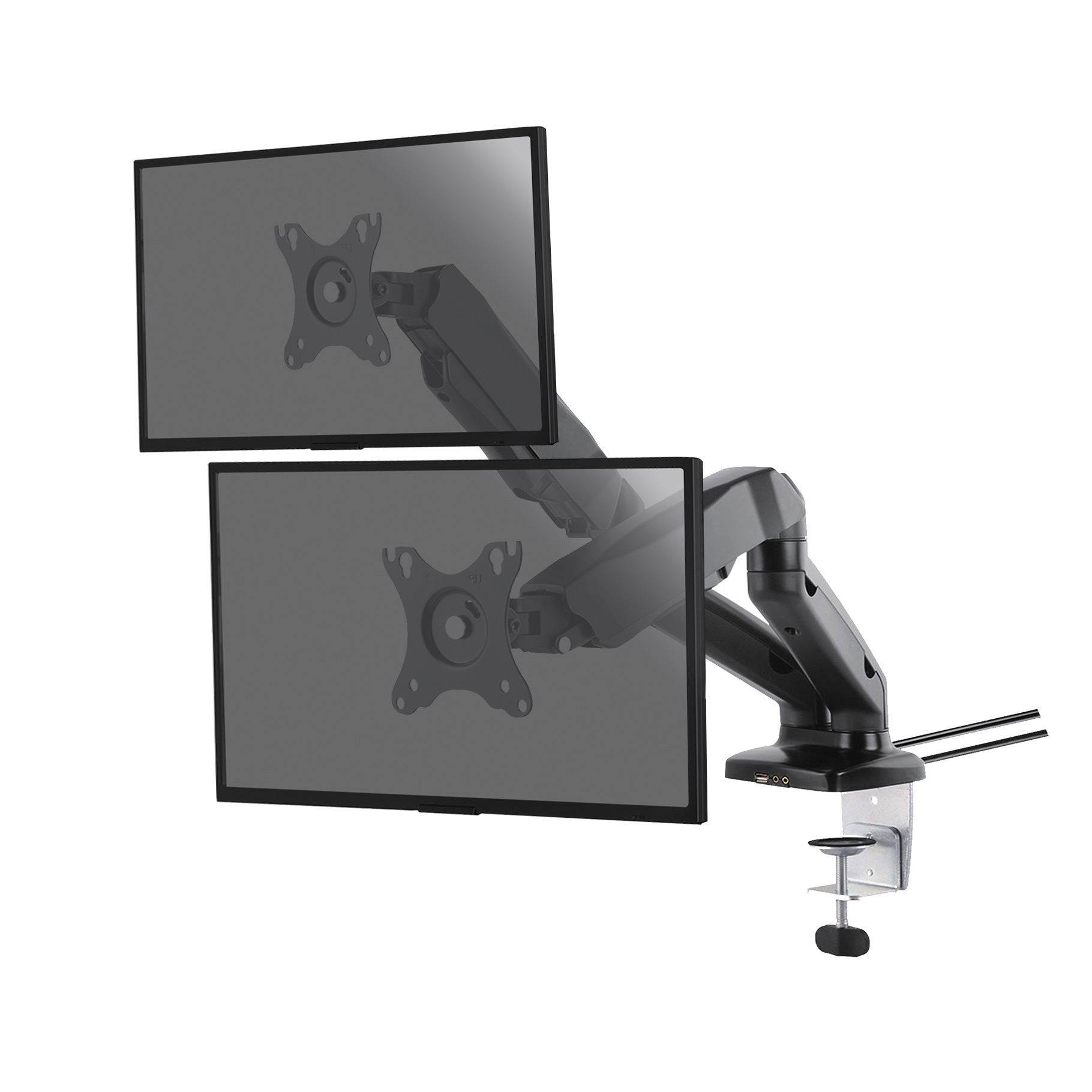 Soporte de Mesa Ajustable para 2 PC 13″-27″ + Puertos USB y Audio