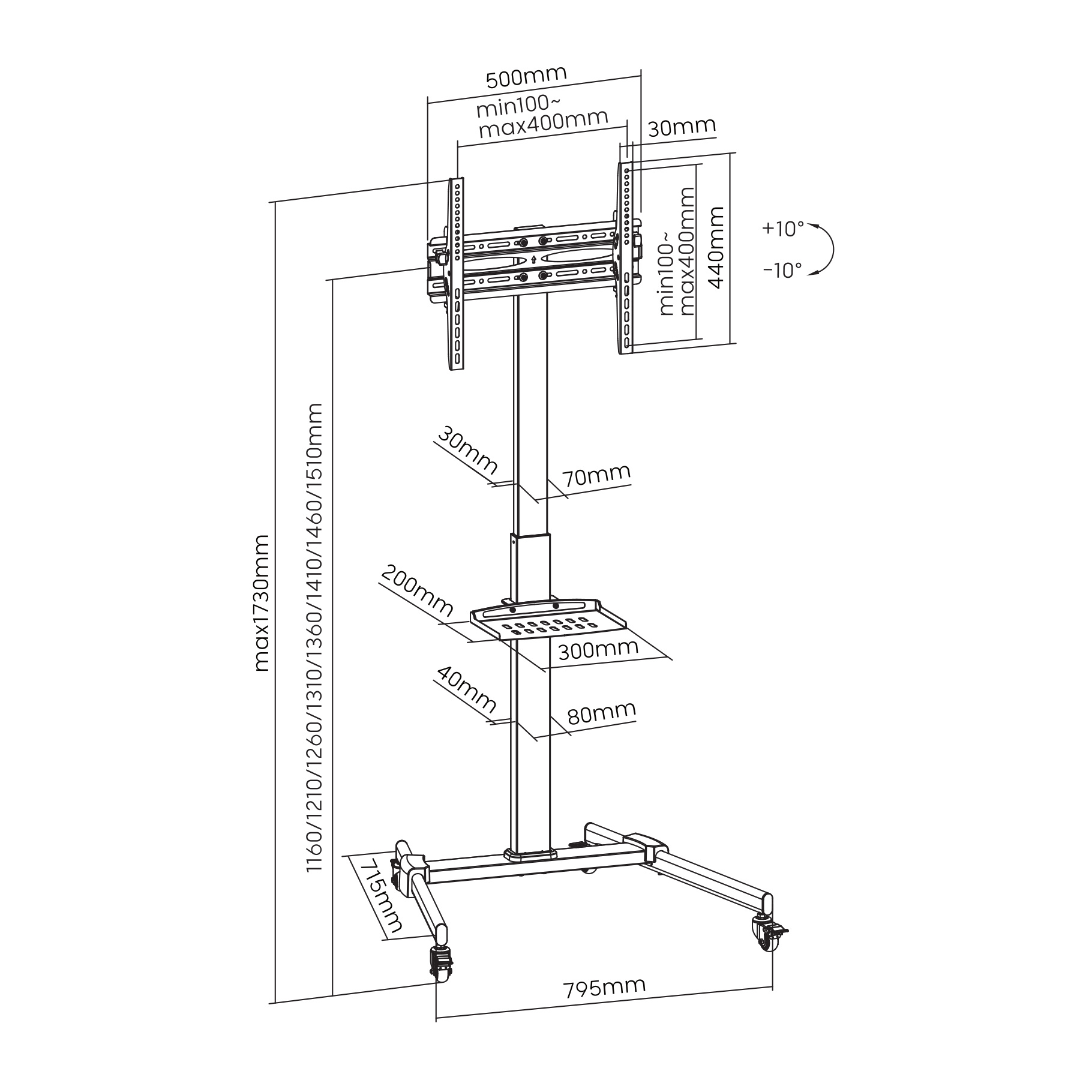 Ajuste telescópico de la altura al nivel deseado (1160mm/1210mm/1260mm/1310mm/1360mm/1410mm/1460mm/1510mm),
