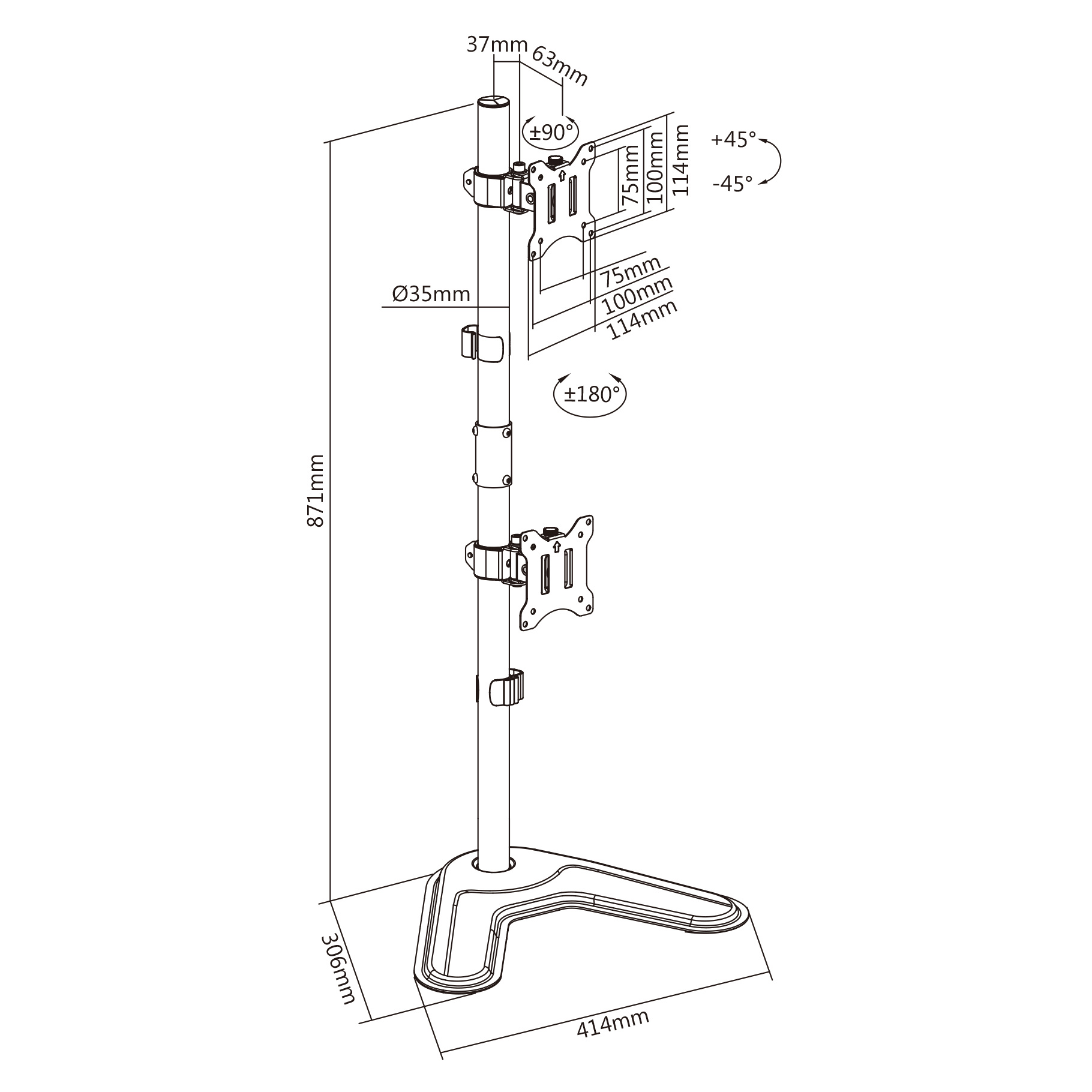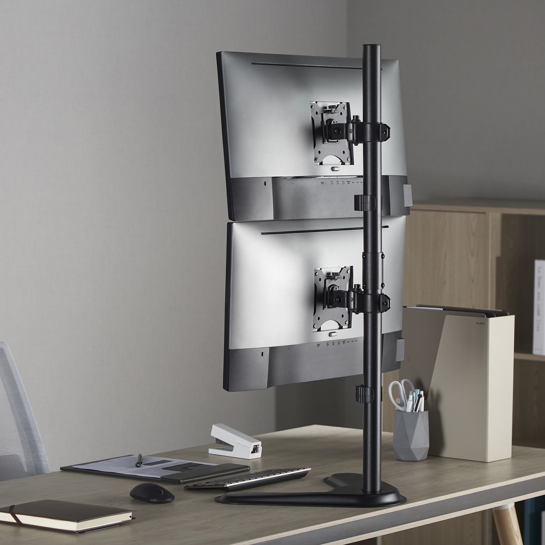 El soporte KIMEX 015-1152 es ideal para su escritorio, permitiendo instalar hasta dos monitores de 17 a 32″ que cumplan con las normas VESA (75×75 o 100×100), con un peso máximo de 9 kg por monitor. Este soporte ergonómico ofrece ajuste en altura, inclinación y giro para una personalización óptima. Además, cuenta con un sistema de gestión de cables que asegura un acabado ordenado y profesional.