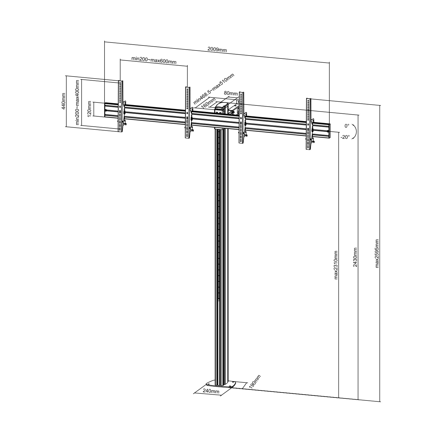 Soporte de suelo atornillable para 2 TV 50″-55″, Altura 240 cm, Inclinable