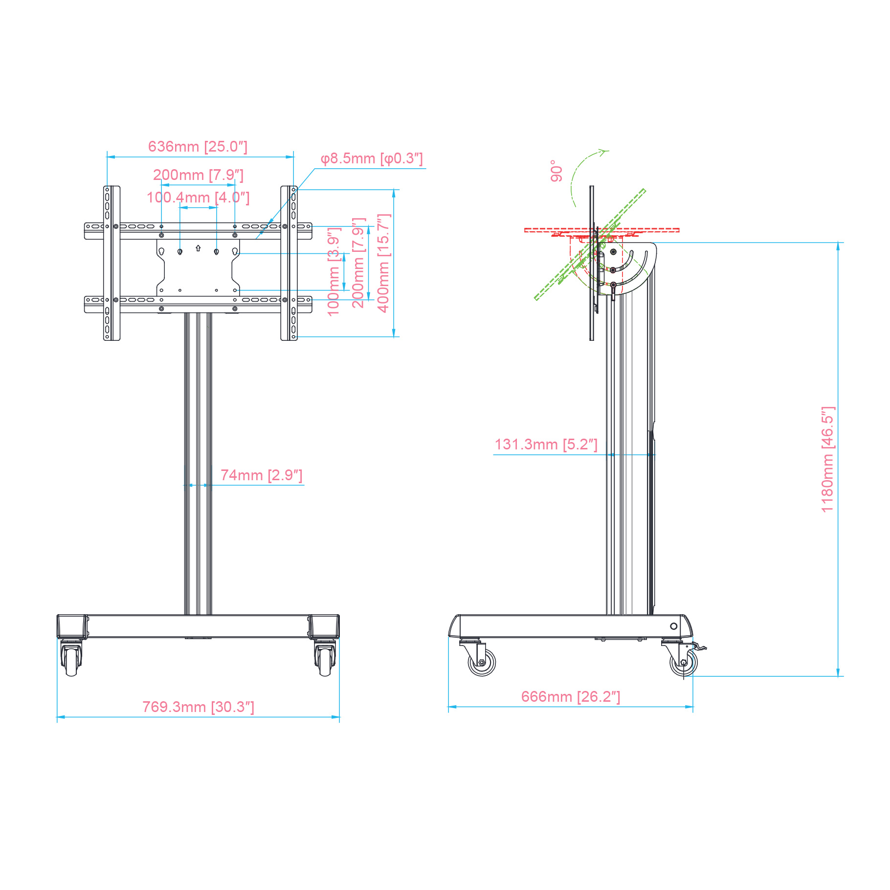 Soporte móvil para pantallas 32″-75″, Altura 118 cm