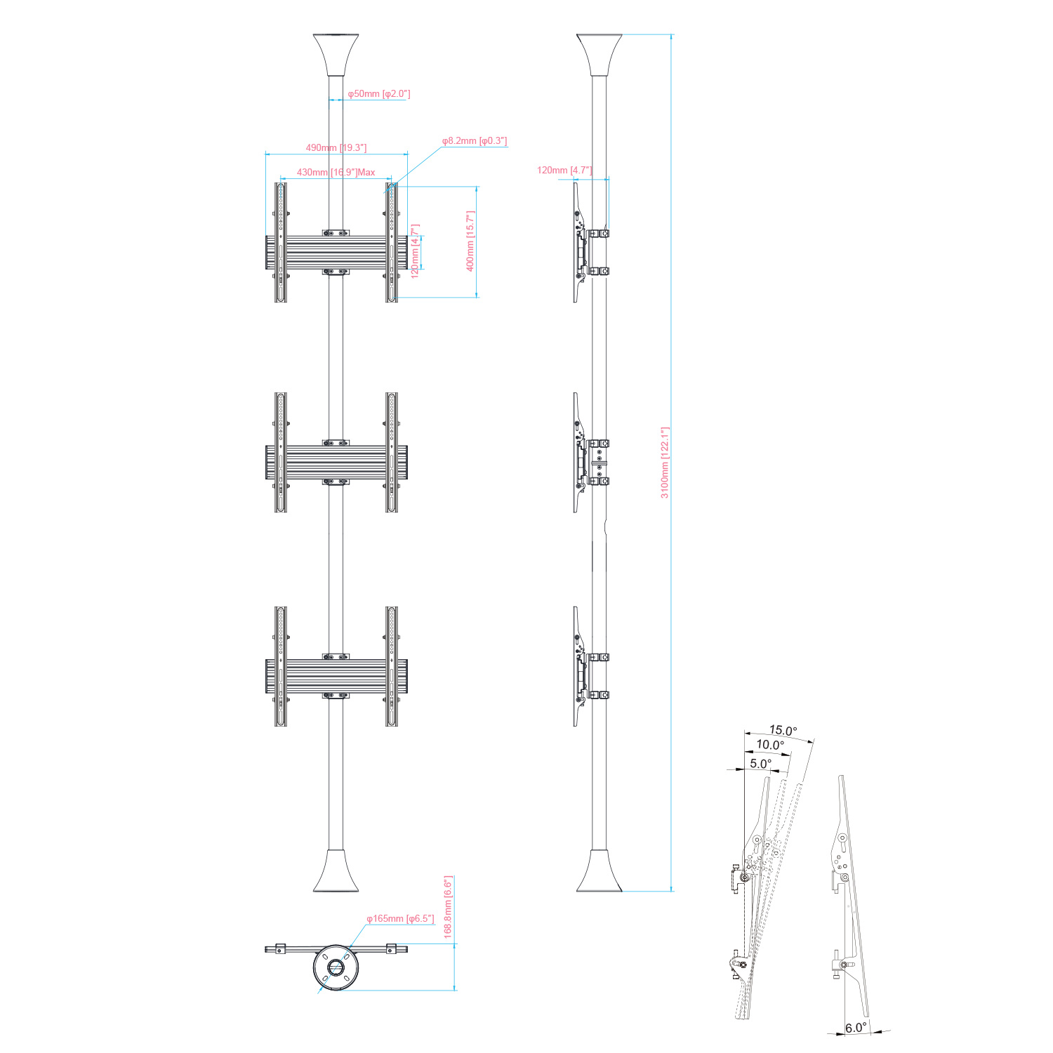 - Instalación segura: Diseñado para montar sus pantallas de manera segura entre el suelo y el techo.