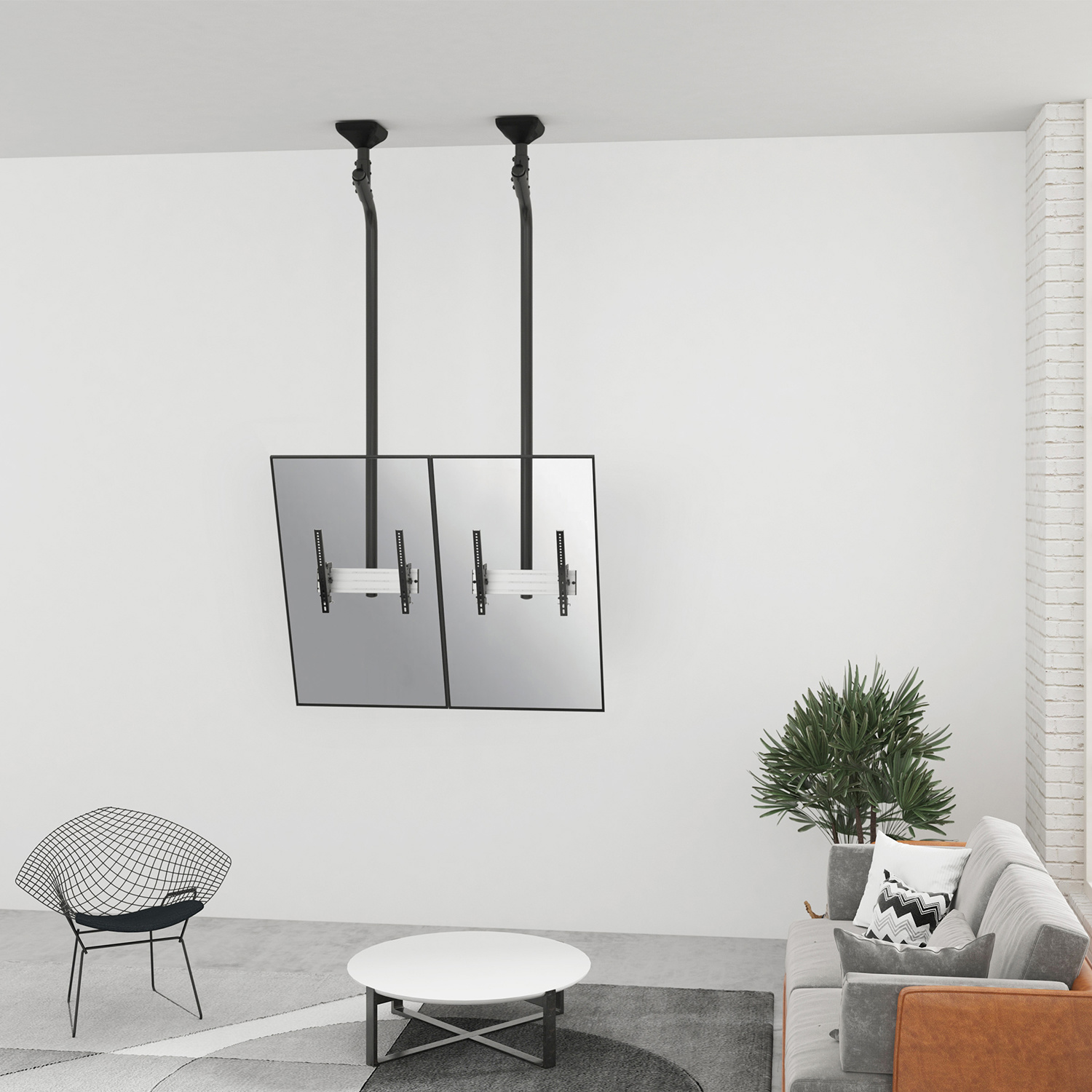 El soporte de techo KIMEX 031-4110K4 está diseñado para montar pantallas de TV de 43″ a 75″, conforme al estándar VESA (100×100 mm mínimo, 400×400 mm máximo). Este soporte tiene una capacidad de carga de hasta 50 kg, lo que lo hace adecuado para una amplia gama de pantallas.