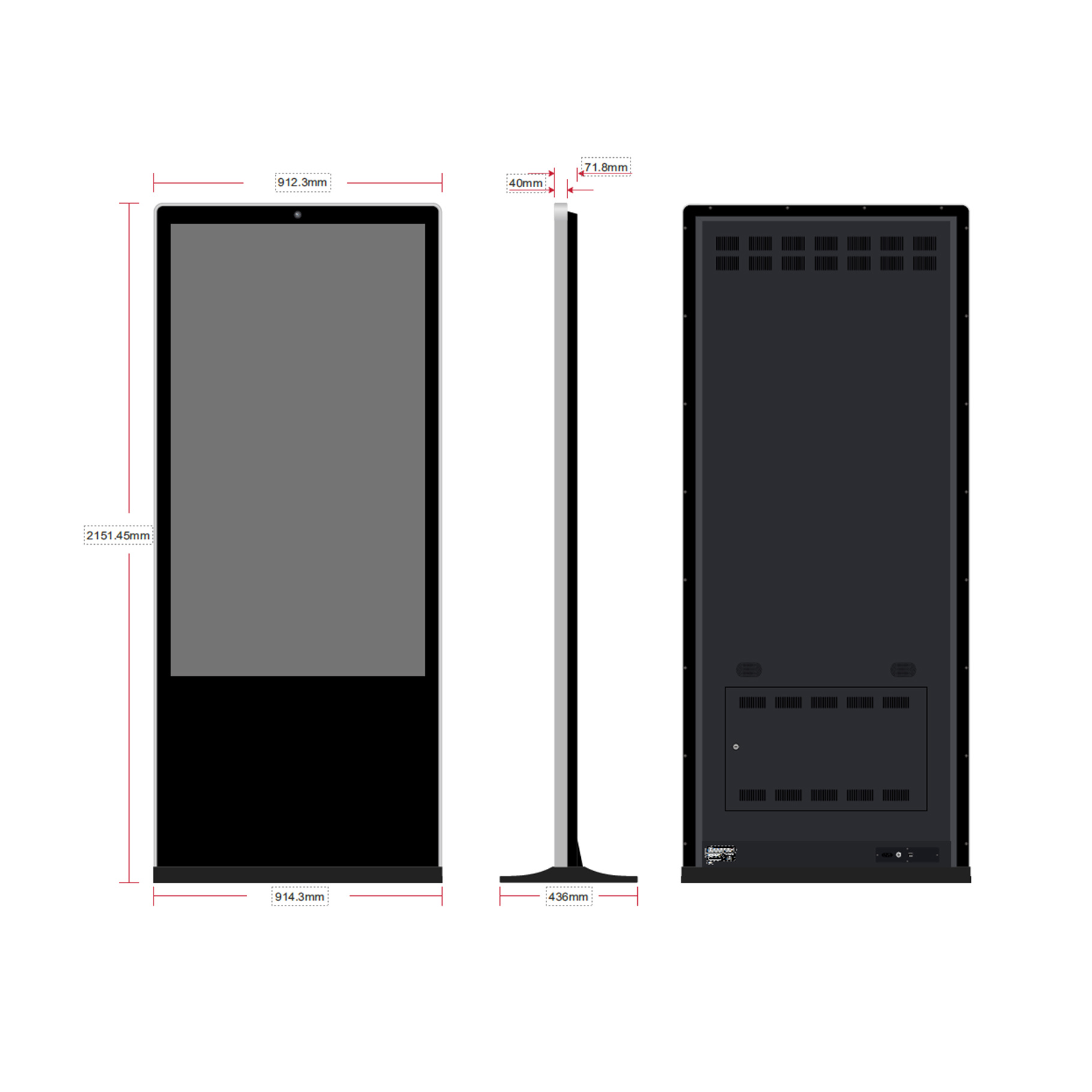 Tótem de vídeo 65″, 4K, 500 cd, 24h/7d, Interior